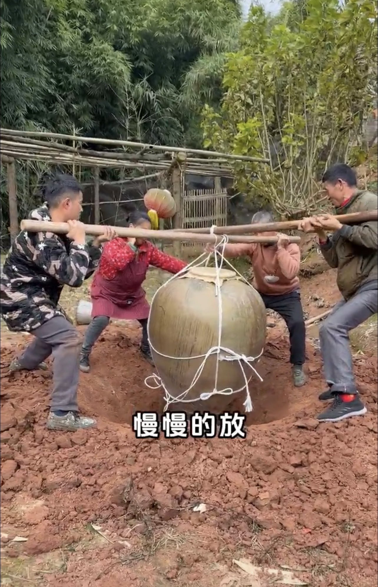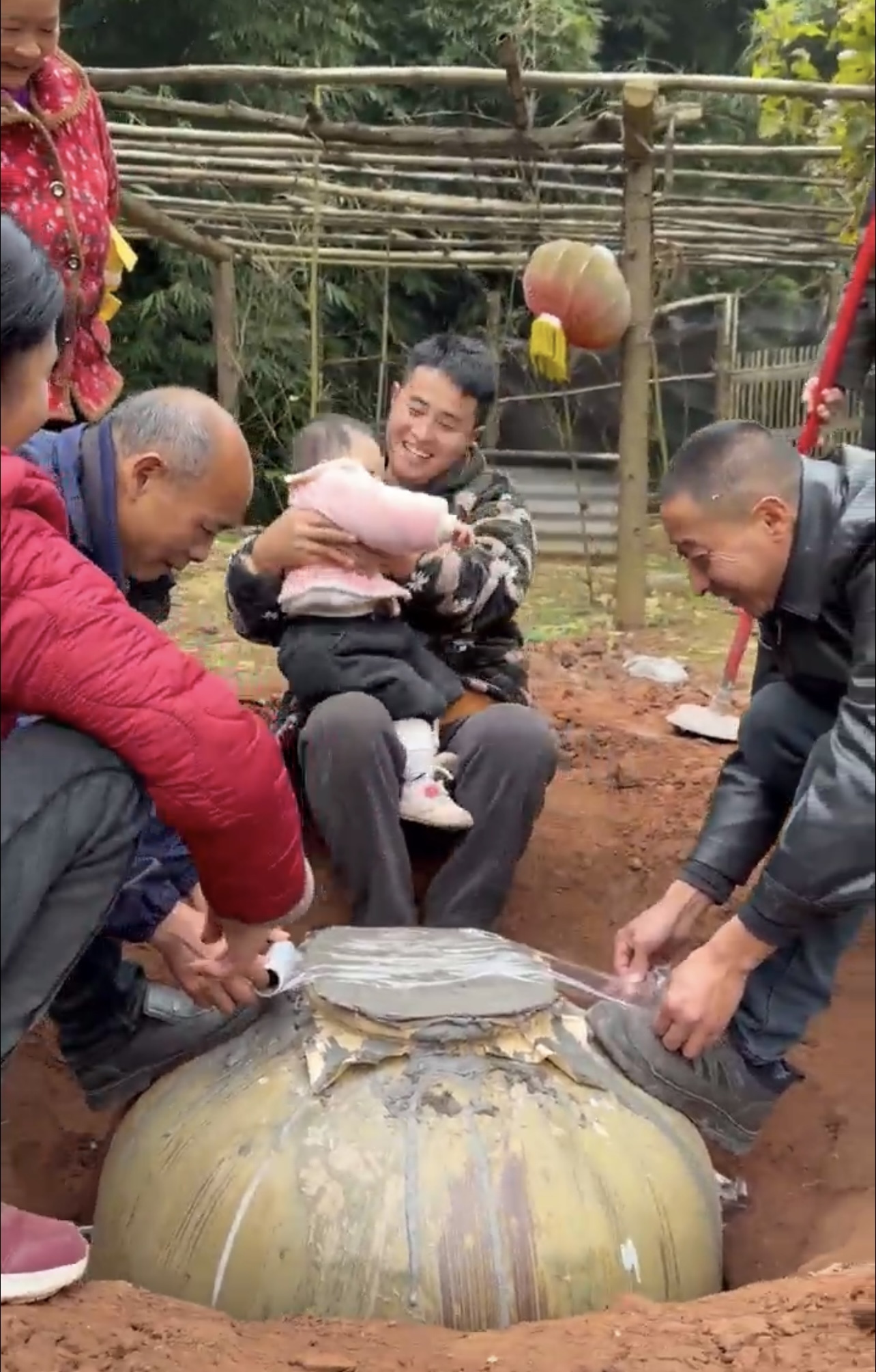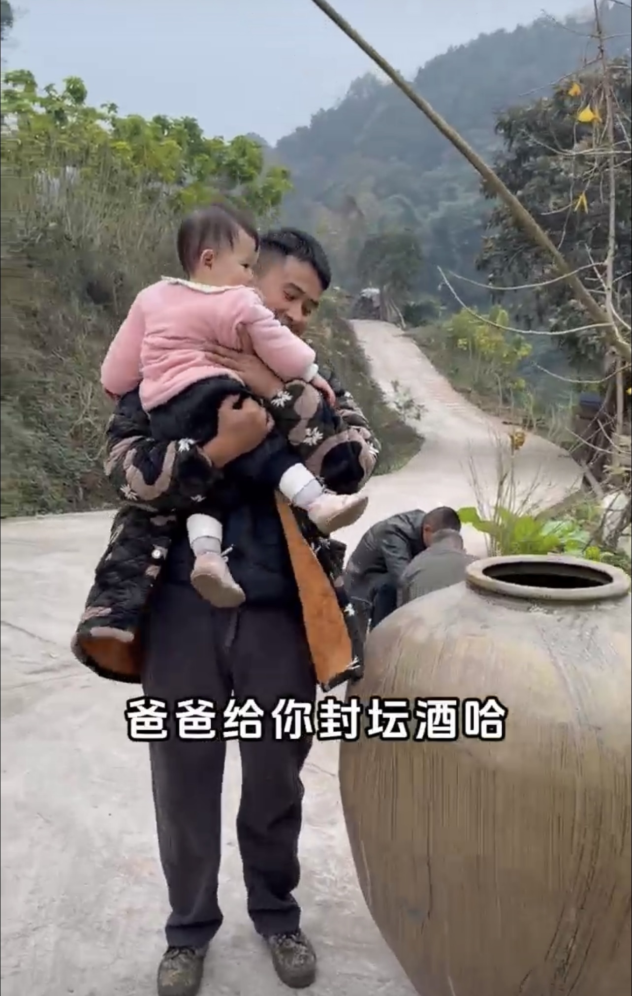 “一上午挖了个大坑,把500斤酒坛抬进去,用水泥和胶纸严严实实封好,就等18年后女儿成年那天打开!” 近日,四川自贡市荣县29岁男子何建东(网名何咚咚)给周岁女儿封藏 “女儿红” 的视频,在网络上引发热议,既有人羡慕这份深沉父爱,也有网友质疑 “地里埋18年的酒能不能喝”。