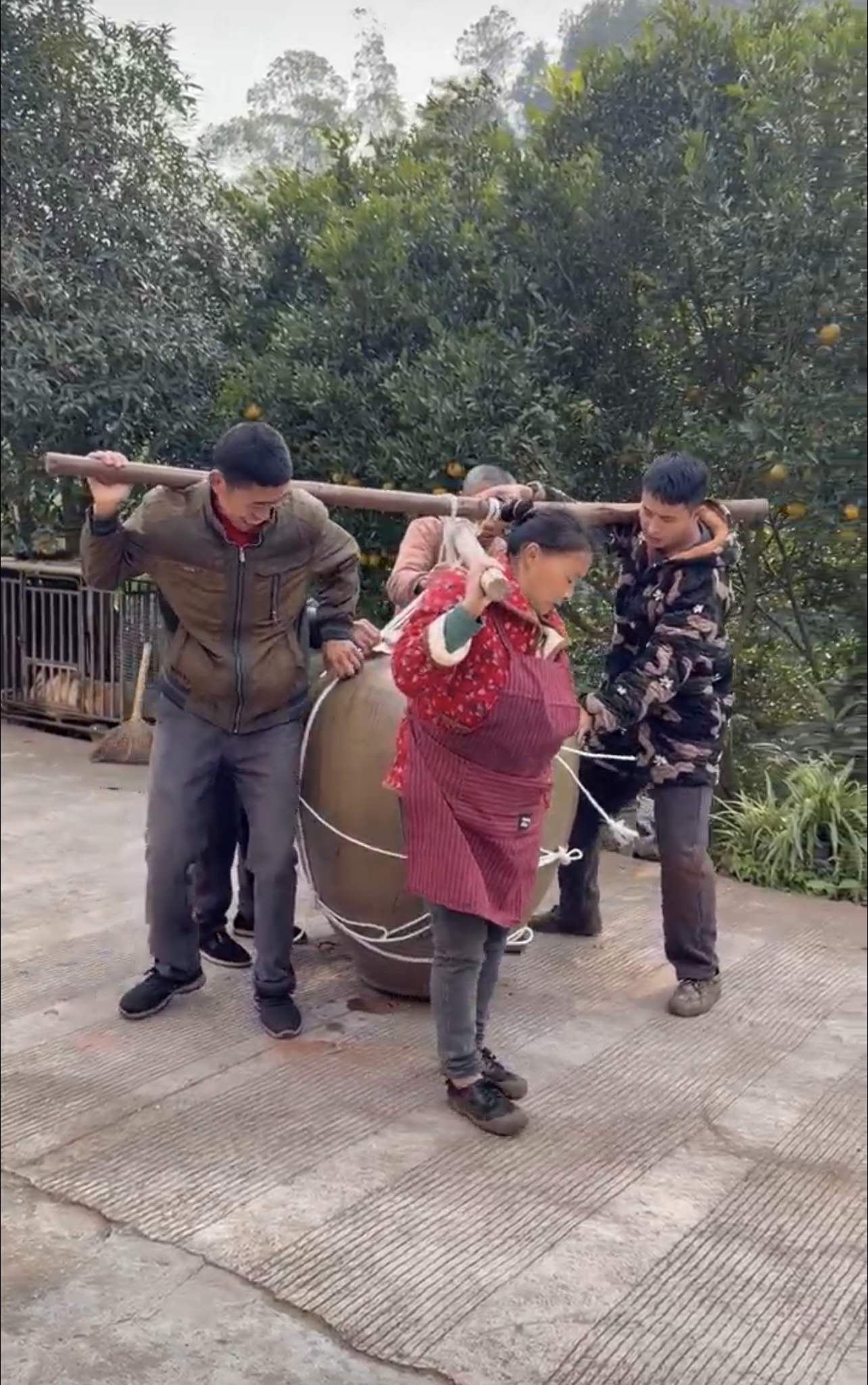 而这次封藏500斤 “女儿红”,源于他对女儿的一份特殊期许。“女儿刚满周岁,想给她留点有意义的东西,买黄金太贵,不如酿点酒存着。” 何建东说,这些酒都是用自家种的高粱,喊姨爹来家里酿了3天的粮食酒,清香纯正,总共酿了493 斤,“不够500斤的寓意,又专门买了90斤补够数”。装酒的坛子更是有故事——那是奶奶当年的陪嫁,以前用来装粮食,现在装满酒沉甸甸的,承载着两代人的牵挂。