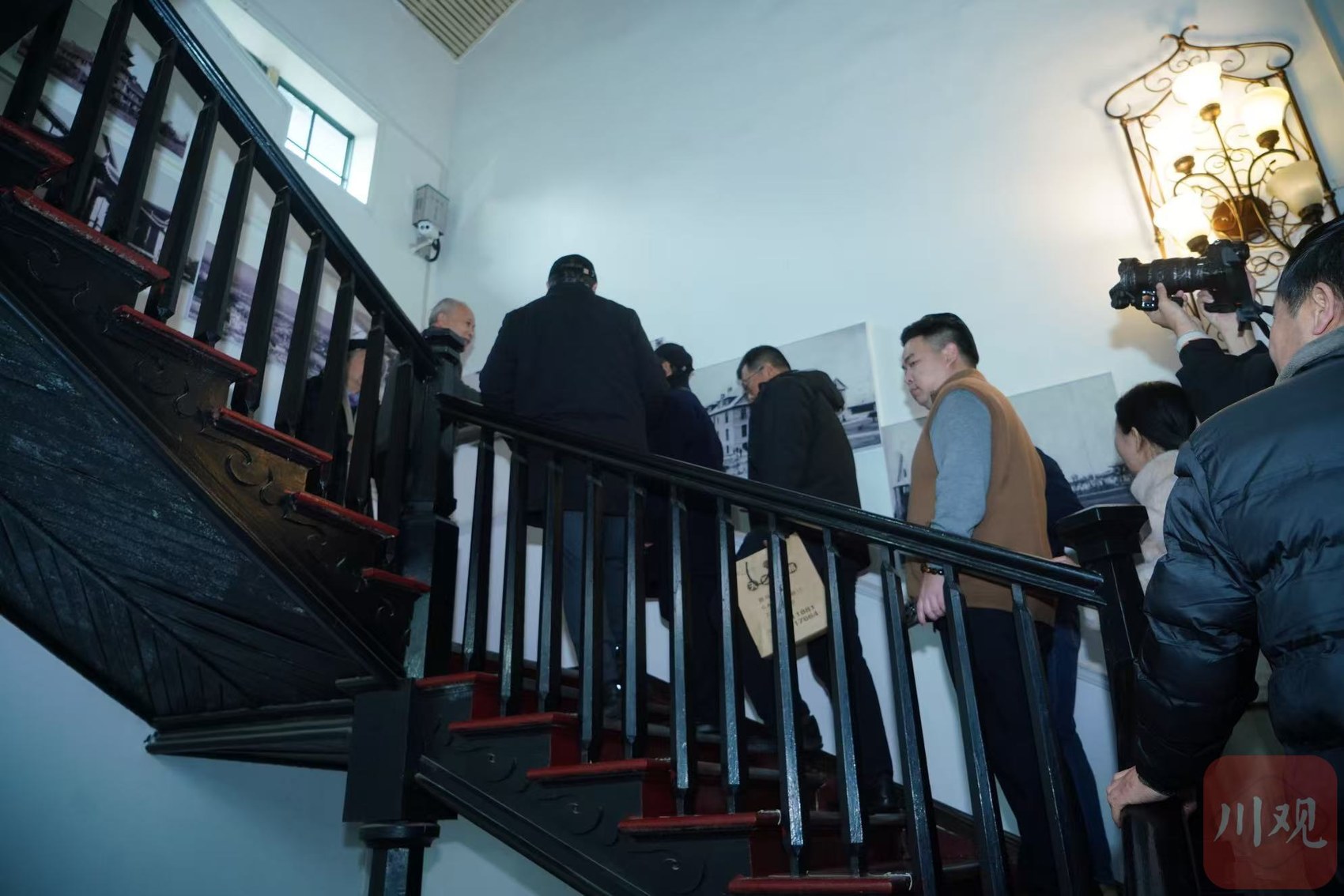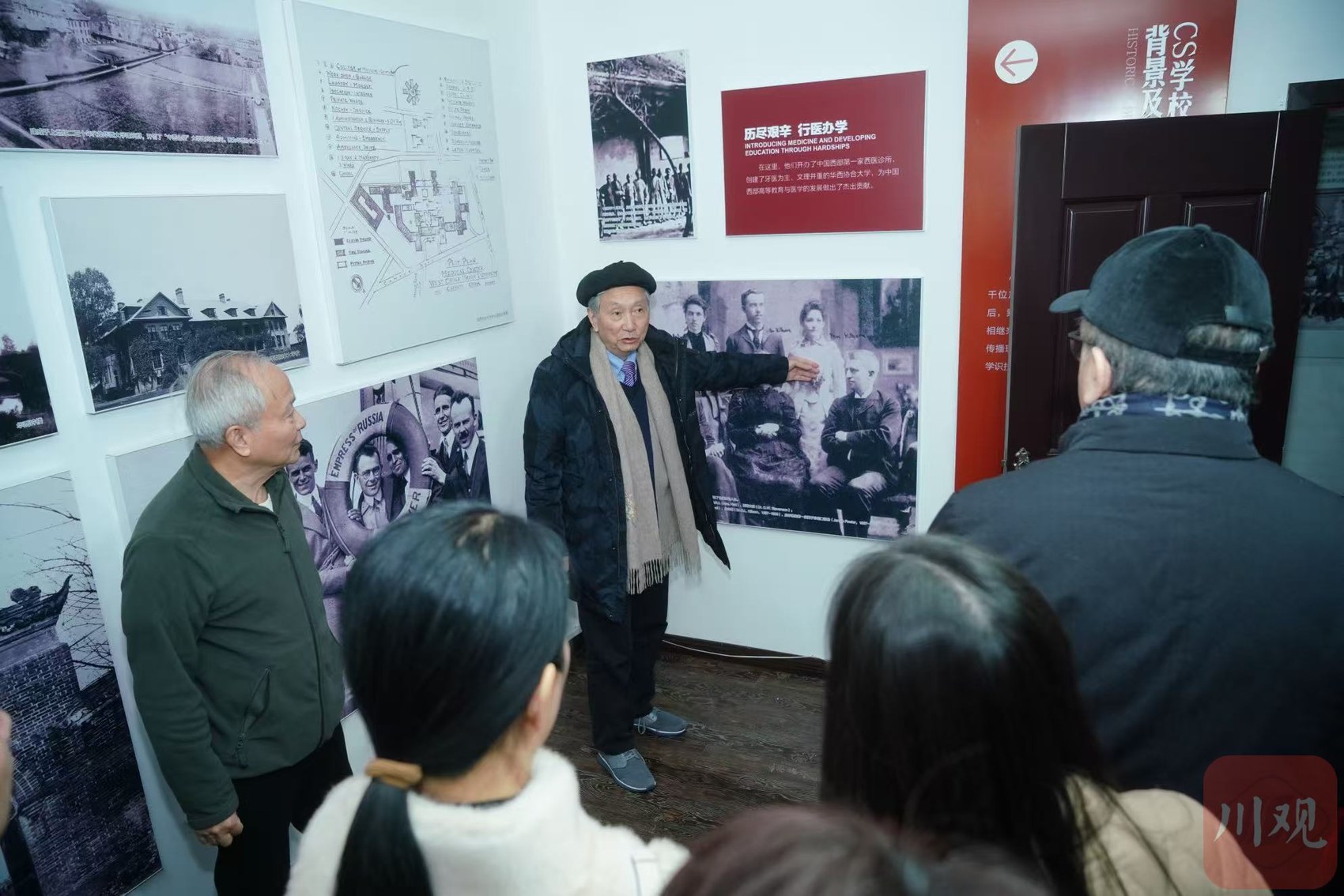 《伊莎白》主创团队和演员拾级而上,在谭楷和邓长春的引导、解说下,参观华西加拿大学校陈列。一张张写满岁月风尘的老照片,一件件加拿大学校子弟捐赠的珍贵实物,让久远的伊莎白的成长环境逐渐立体起来。