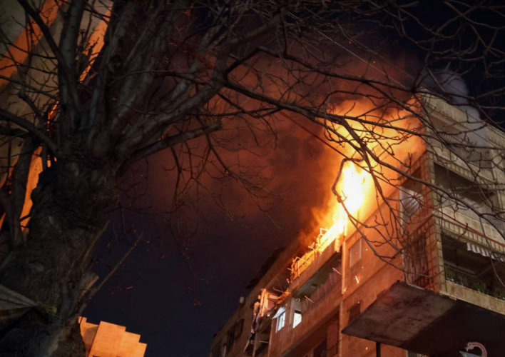 这张叙利亚通讯社发布的照片显示的是12月22日,在叙利亚北部城市阿勒颇,一栋楼房在冲突中失火。