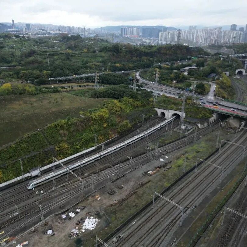 12月23日凌晨,成渝中线高铁引入重庆北站工程第二阶段站改I级施工顺利完成。此次施工作业任务由来自中铁五局、重庆工电段、成都工务大机段、成都电务维修段等多家单位的1200余名施工人员经过1050分钟完成。成渝中线高铁是我国“八纵八横”高铁网沿江通道的重要组成部分,正线全长292公里,设计时速350公里。