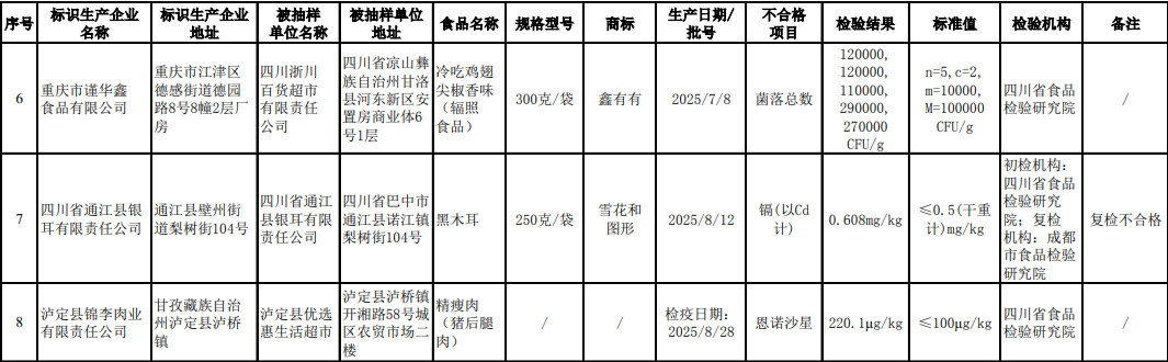 12月23日记者从四川省市场监管局获悉,该局近期组织开展了食品安全“你点我检”专项抽检,涉及食用油、油脂及其制品、糕点、乳制品、饼干、豆制品等30个食品大类,共计1223批次样品,检出8批次样品不合格,发现的主要问题是微生物污染、食品添加剂违规使用、兽药残留超标、重金属污染等。对抽检中发现的不合格食品,该局已要求属地市场监管部门组织开展核查处置。
