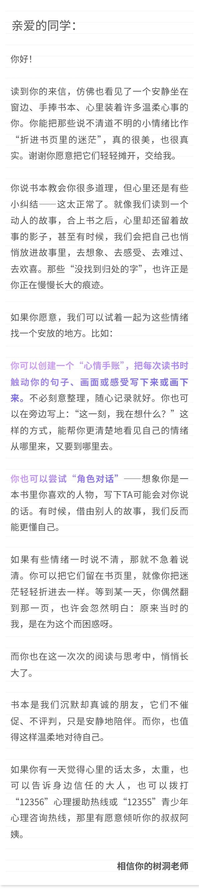 一位12岁的女孩:我把翻书时没说出口的迷茫,悄悄折进书页里,现在想借你这儿,把它们轻轻摊开。刚读完的故事里藏着我的小情绪,像没找到归处的字,想慢慢说给你听,不用急着回应。书本教会我很多道理,可有些心里的小纠结还是说不明白,今天想跟你好好聊一聊。