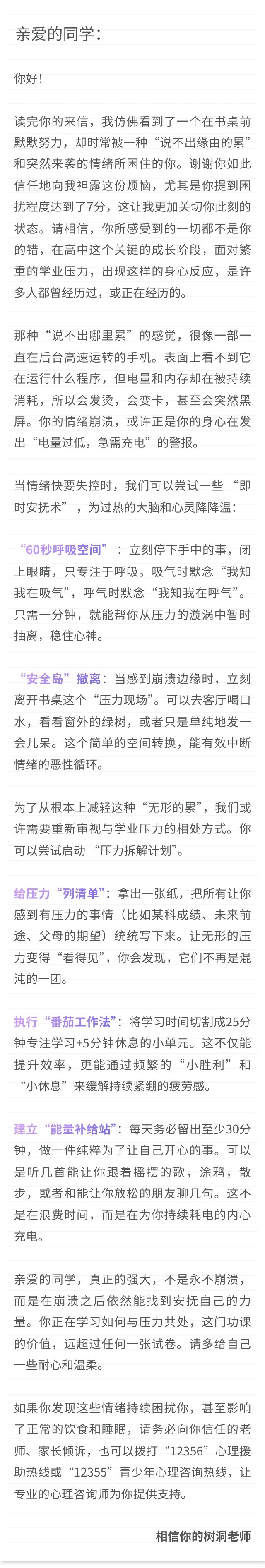 一位16岁的高中生:我有时候觉得很累,但我说不出哪里累,很容易情绪崩溃这让我很烦恼,我也不想这样,但每次都控制不住。