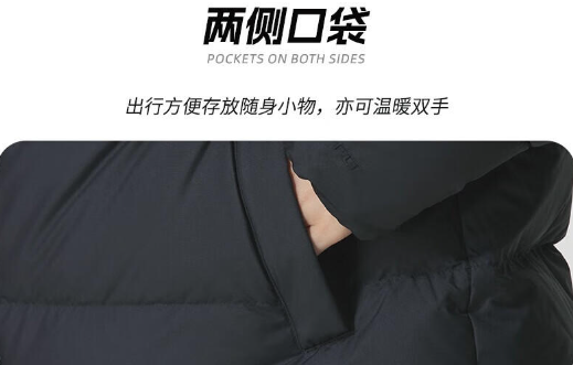 两侧都有口袋,冬天把手揣兜里,既保暖又能增加储物空间!