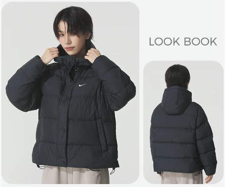 别急,小编给大家带来了【Nike Therma-FIT Sports wear Metro 品牌logo宽松连帽保暖羽绒服】!