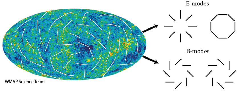 原初引力波一经产生,便在宇宙中回响。当原初引力波穿过早期的宇宙时,它会以一种非常特殊的方式“挤压”和“拉伸”时空,从而影响宇宙微波背景光子的偏振方向。这种效应产生了一种独特的偏振图案,被称为 “B模式偏振” 或 “旋涡状偏振”。