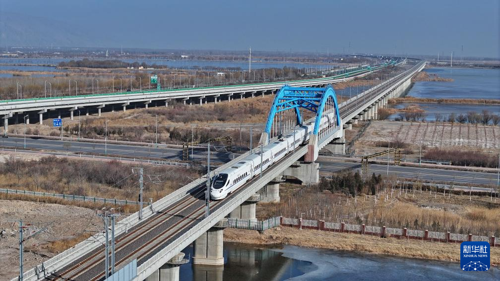 12月23日,包银高铁首发列车D4667次动车组行驶在石嘴山境内。