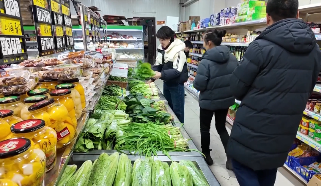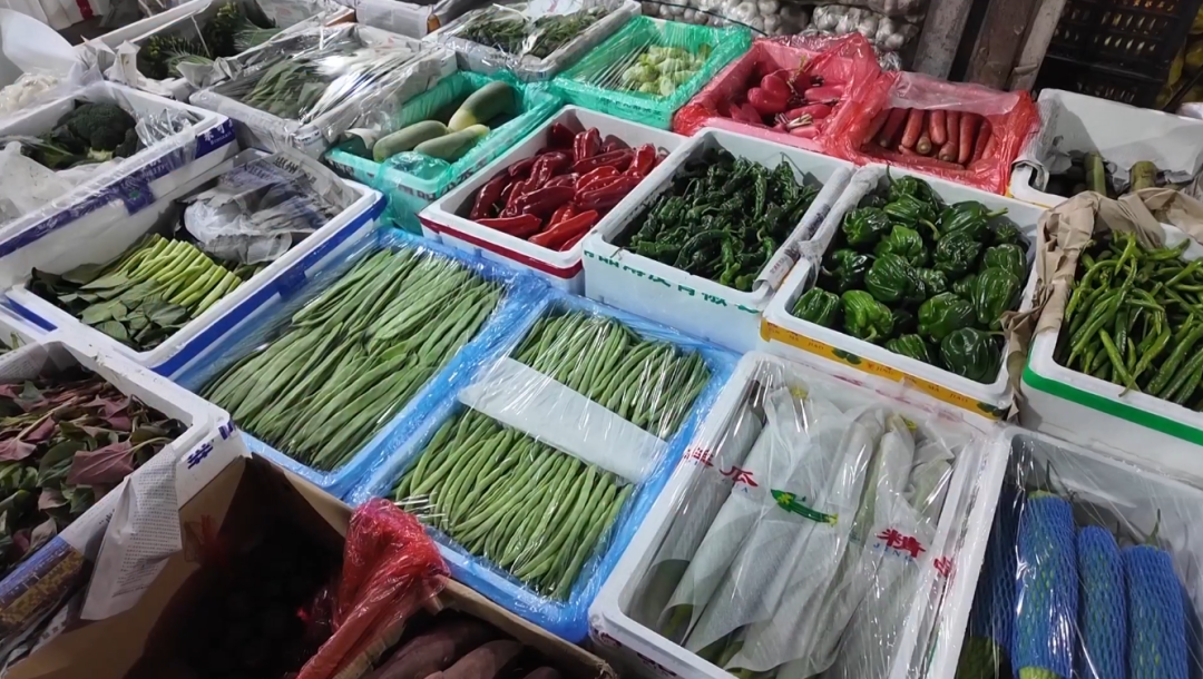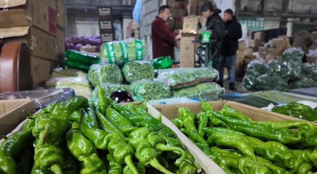 批发环节高效运转,零售终端也密集覆盖。在高新区76号便民直销点,辣椒、豆角、毛芹菜等各类蔬菜摆放整齐,种类丰富。