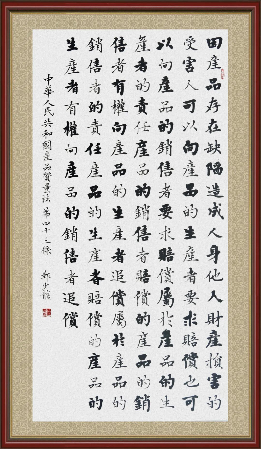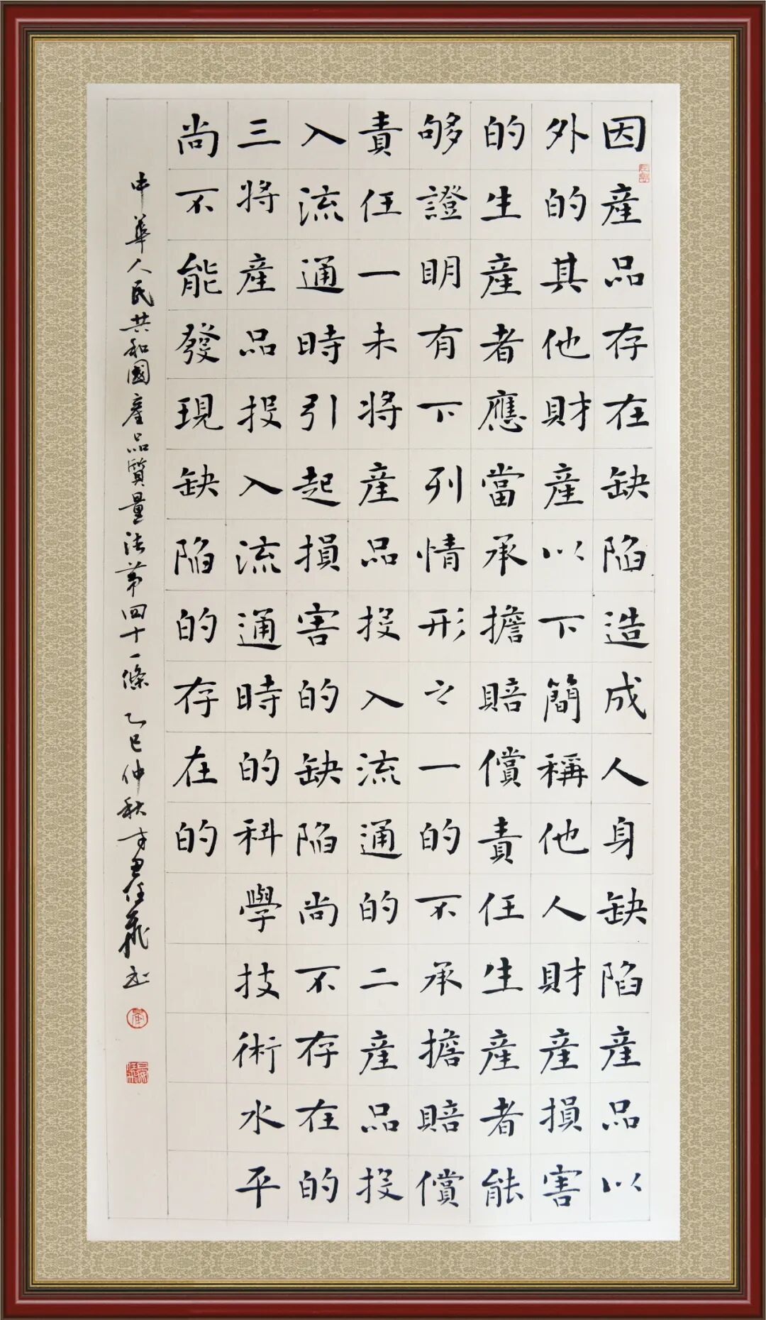 《中华人民共和国产品质量法》自1993年9月1日起开始施行,先后进行三次修正。作为产品质量领域的基本法律,产品质量法对规范产品质量管理、维护消费者合法权益、促进经济社会发展具有重要意义。为更好地学习、宣传、贯彻这部法律,在国家市场监督管理总局法规司的支持下,法治日报社开展了“‘书·法’系列活动之书写《中华人民共和国产品质量法》”活动。