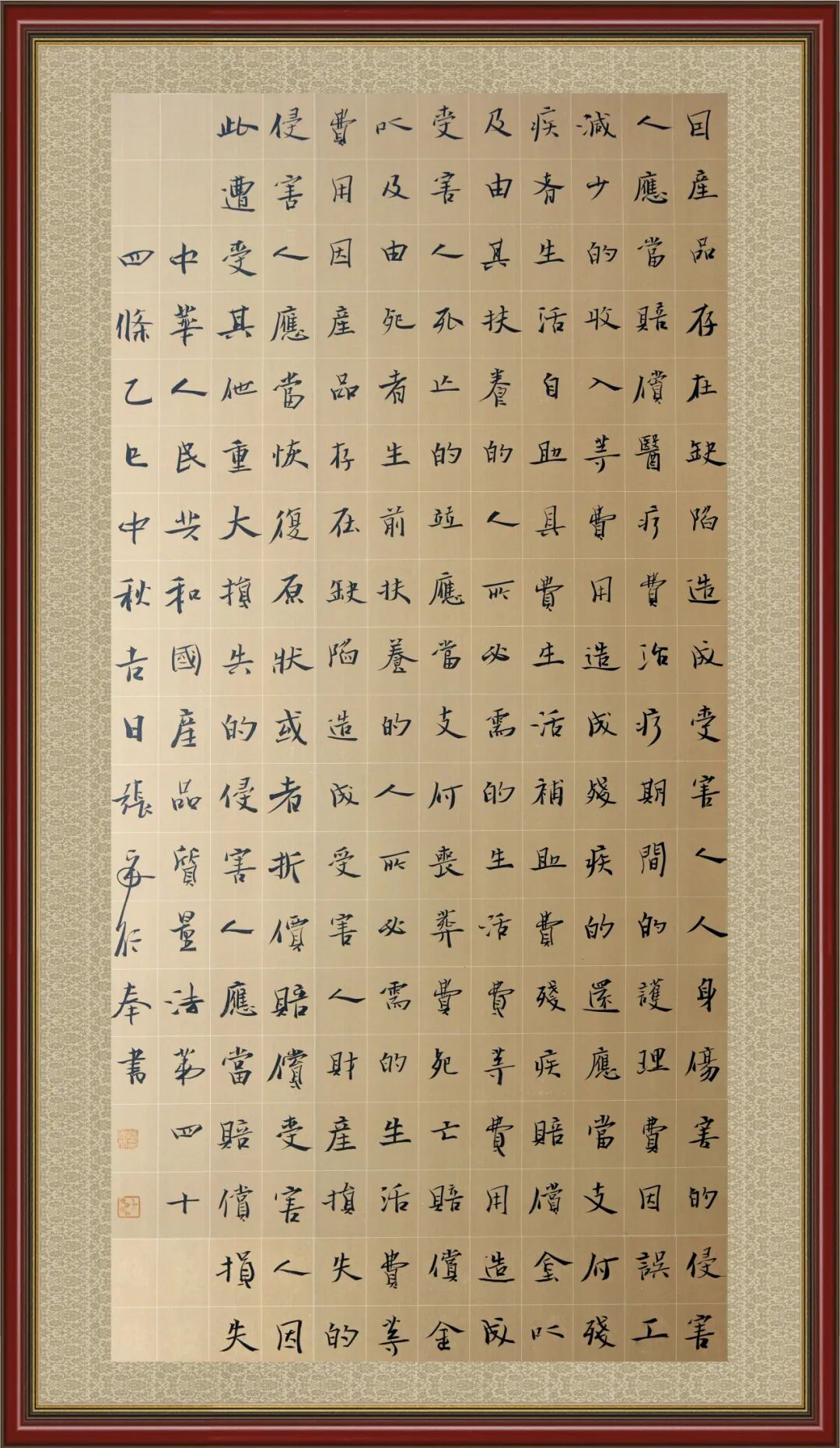 2020年7月11日,由法治日报社主办的“书·法”系列活动正式启动,先后书写《中华人民共和国民法典》《中华人民共和国宪法》《中华人民共和国民营经济促进法》等20部法律法规。