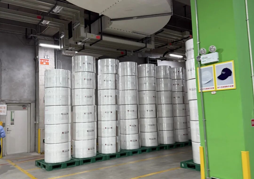 木浆、无纺布,是卫生巾的最重要原料。在苏菲超过两万平米的原材料仓库里,木浆纸卷和无纺布按照入库日期,整齐堆放在置物架上。为了防虫、防蚊,仓库采用全封闭设计,高速防虫卷帘门只在有人经过的时候才会上下开关,灭虫灯和捕鼠板也布置在每个角落。整个仓库的空气正压系统如“无形防护罩”能有效阻止外部虫害和尘埃侵入。