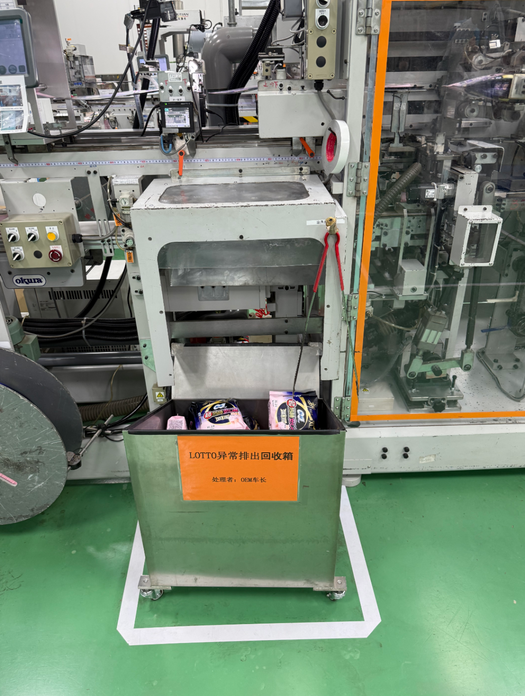 很快,在产线的异物排出区,带着那两个油墨点的安心裤被设备自带的高速异物剔除系统精准分拣了出来,油墨点的形状和当初写下的完全一致。