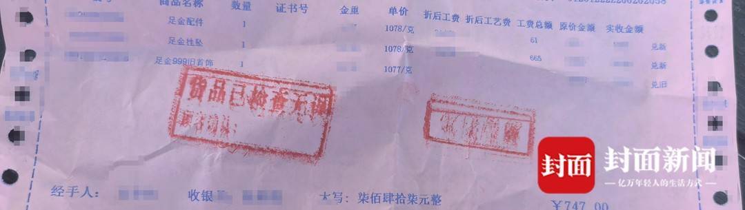 消费者晒出“旧料换新款”提货单 收据金额仅为工费差价