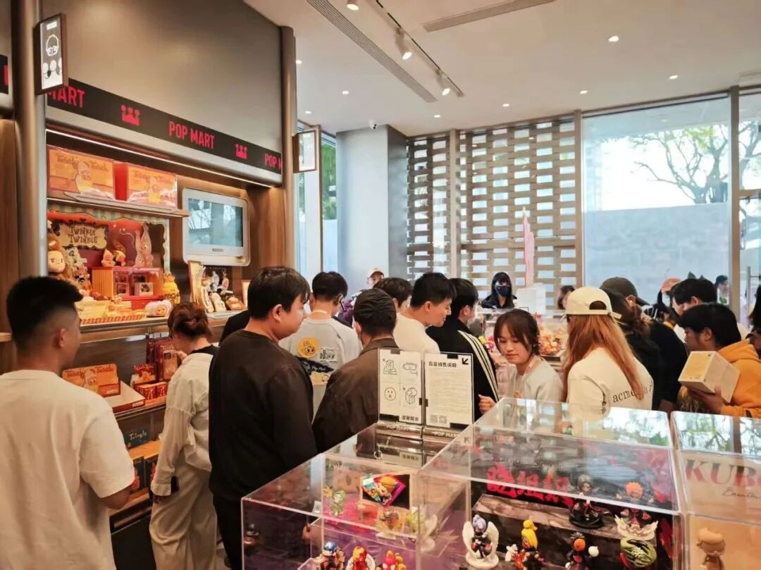 23日早上,记者来到聚龙湾太古里新开的泡泡玛特店铺,看到店门口排满了选购盲盒商品的顾客,店内也是人头攒动。“门店还没开门我就过来排队了,因为这家店今天新开,可以端盒(购买一整个系列)买到星星人的盲盒,平时都是要线上抢才行。”市民陈女士向记者表示。