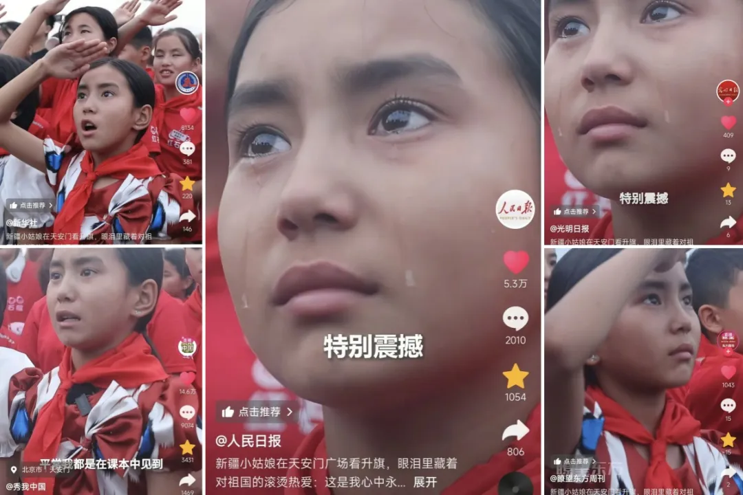 七月的天安门广场,10岁的帕提曼罕·排日海提望着冉冉升起的国旗热泪盈眶,几十秒的画面,道尽对祖国最纯粹的深情。
