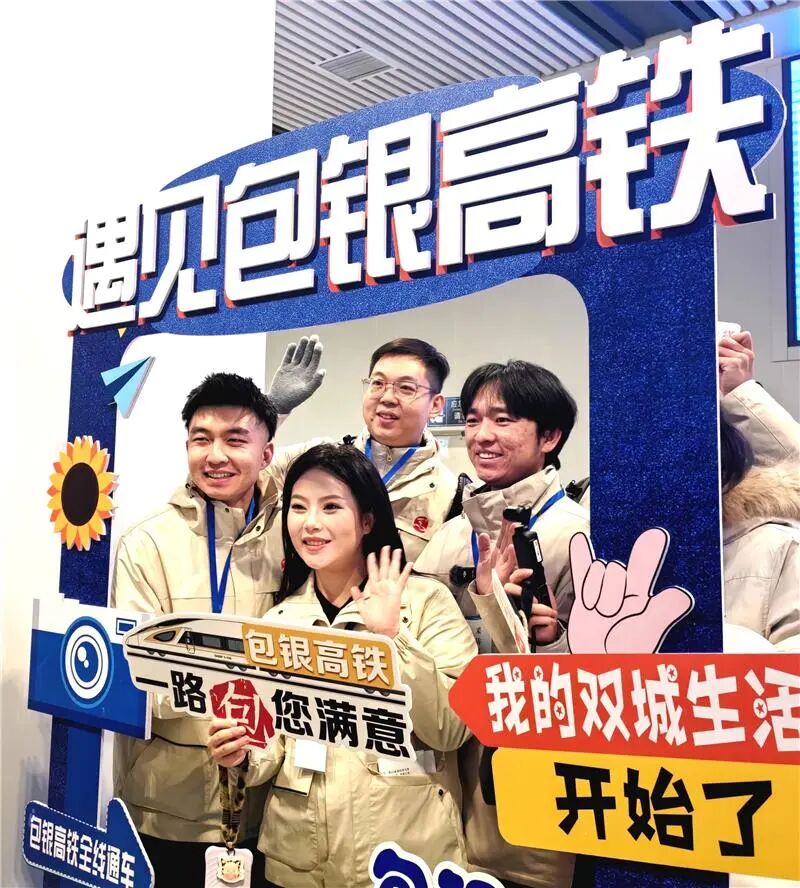 包银高铁全线贯通列车首发合影留念。(赵亚陆 摄)
