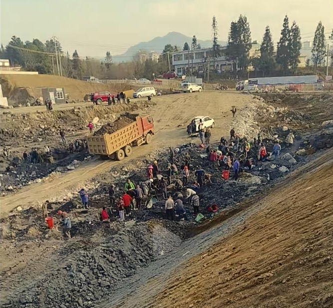 修路挖到煤层引发捡拾 政府回应已处理妥当
