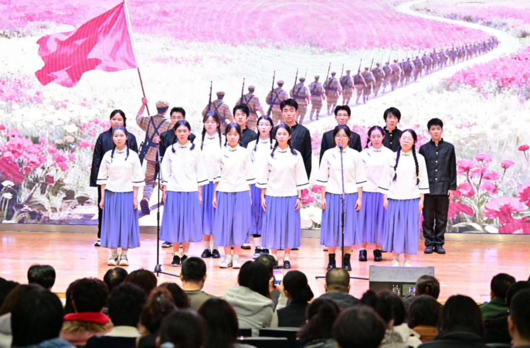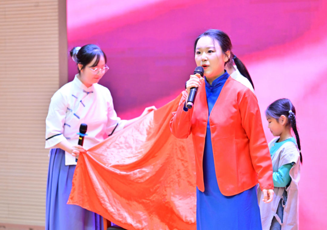 闭幕式上,河西区全运村小学的课本剧《为中华之崛起而读书》重现少年周恩来的鸿鹄之志,一句振聋发聩的誓言穿越百年风云,在新时代少年的耳畔回响,点燃胸中炽热的报国豪情;第二新华中学的情景剧《绣红旗》里,红岩志士以针为笔、以线为墨,在方寸绣布间织就信仰的图腾,那一抹炽热的中国红,映照着革命先辈的赤胆忠心,直抵观众心底最柔软的角落。“百岁红领巾”思政小课堂上,师生相互呼应,从安源路矿的星星之火,到长征路上的烈烈旌旗,再到新时代少年胸前飘扬的红领巾,百年红色基因如涓涓细流,浸润着一颗颗纯真的心灵。