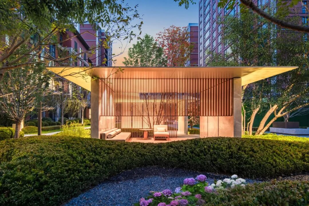 为以自然还原禅意本真,梅江壹号院团队翻越万里,寻到了600余棵树木,每一棵都带着原生地的泥土与根系,从而确保了树木的质朴与自然。如园中一棵拥有六十余年树龄的朴树,其树形苍劲舒展,不必刻意修剪,它立在那里就有故事。四季流转间,春日樱棠烂漫成锦,秋日栾树垂金、元宝枫燃红,夏季浓荫覆径,冬季绿意缀底,让禅意在时序的更替中默然生长。