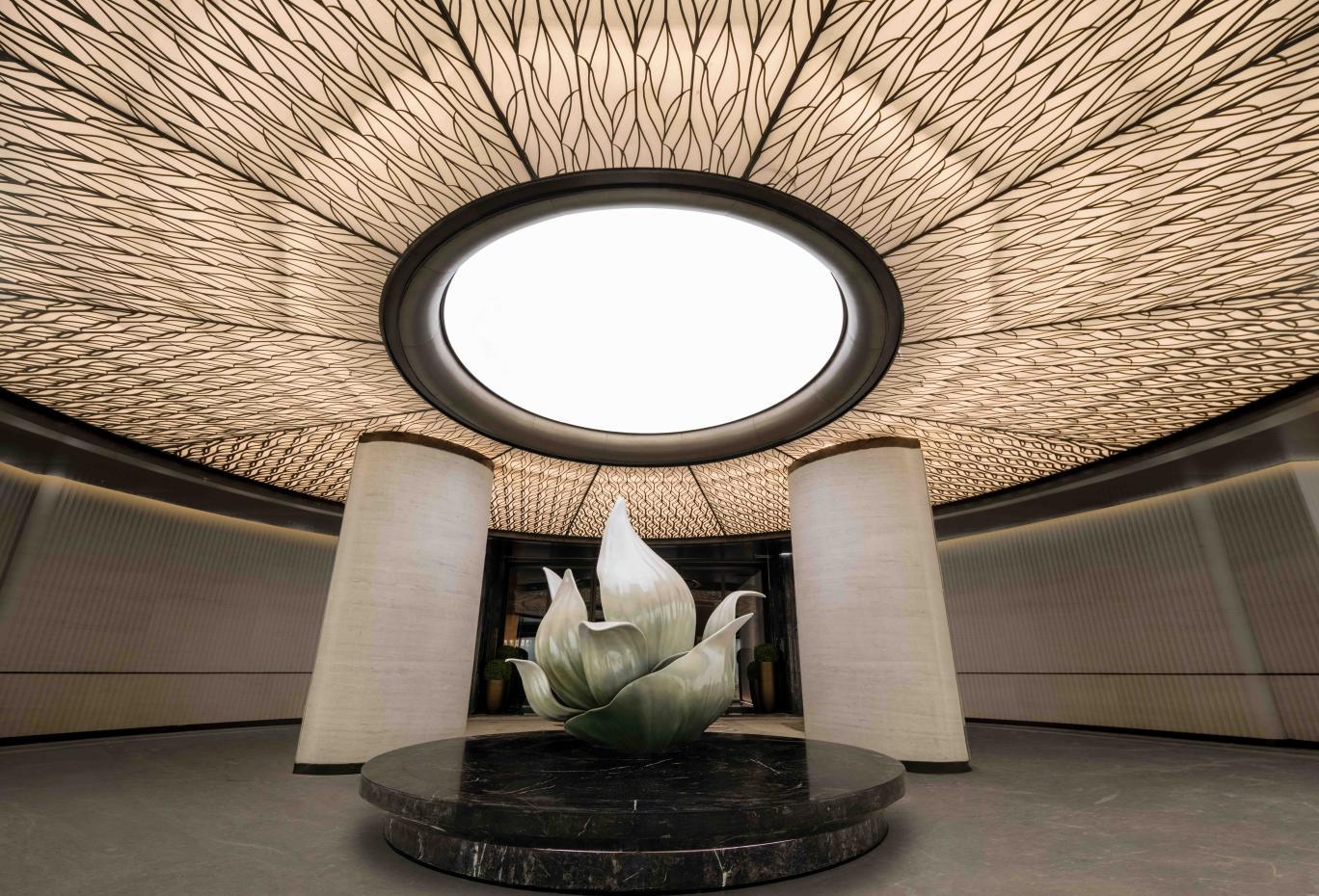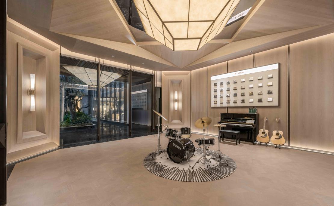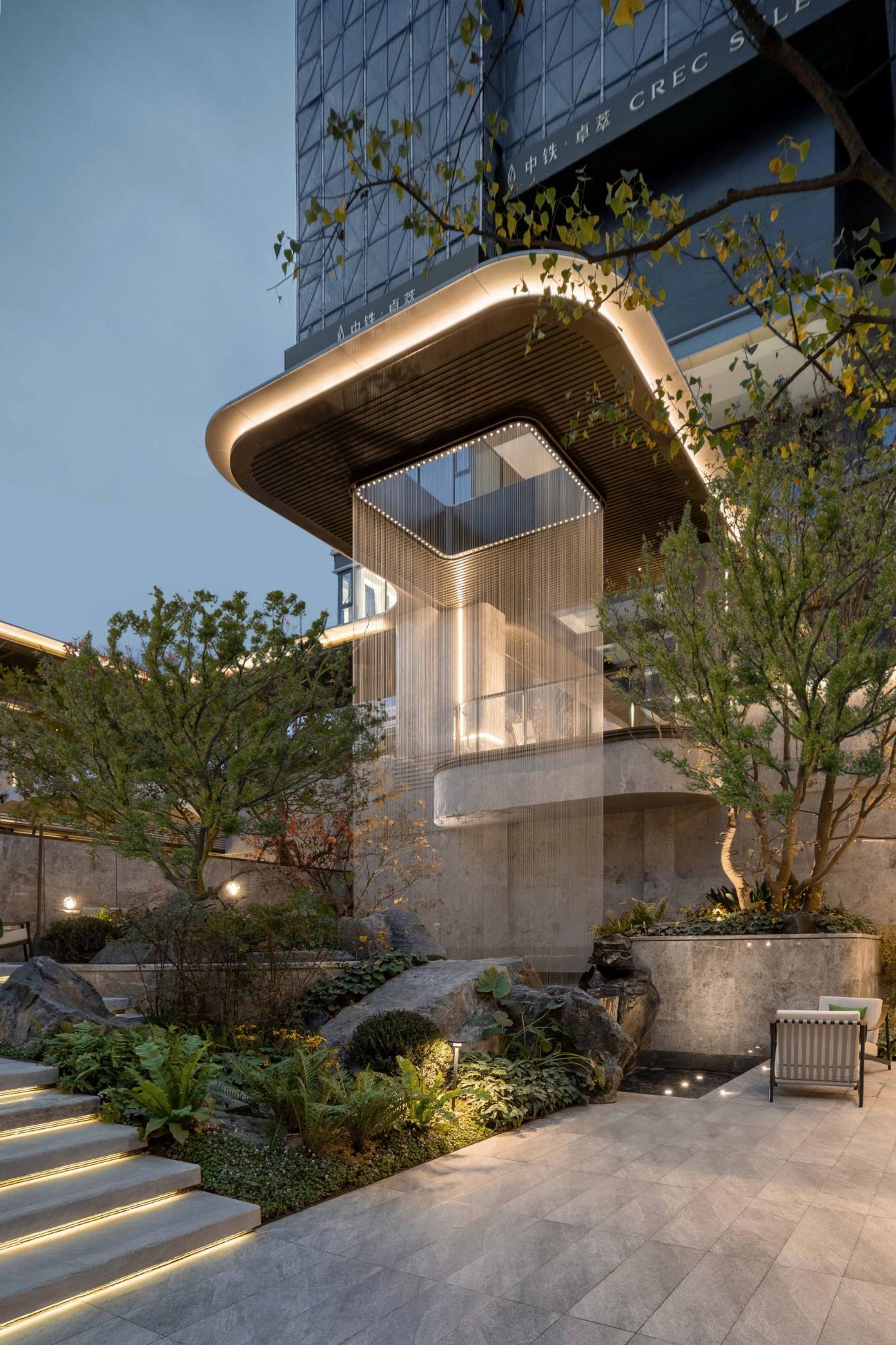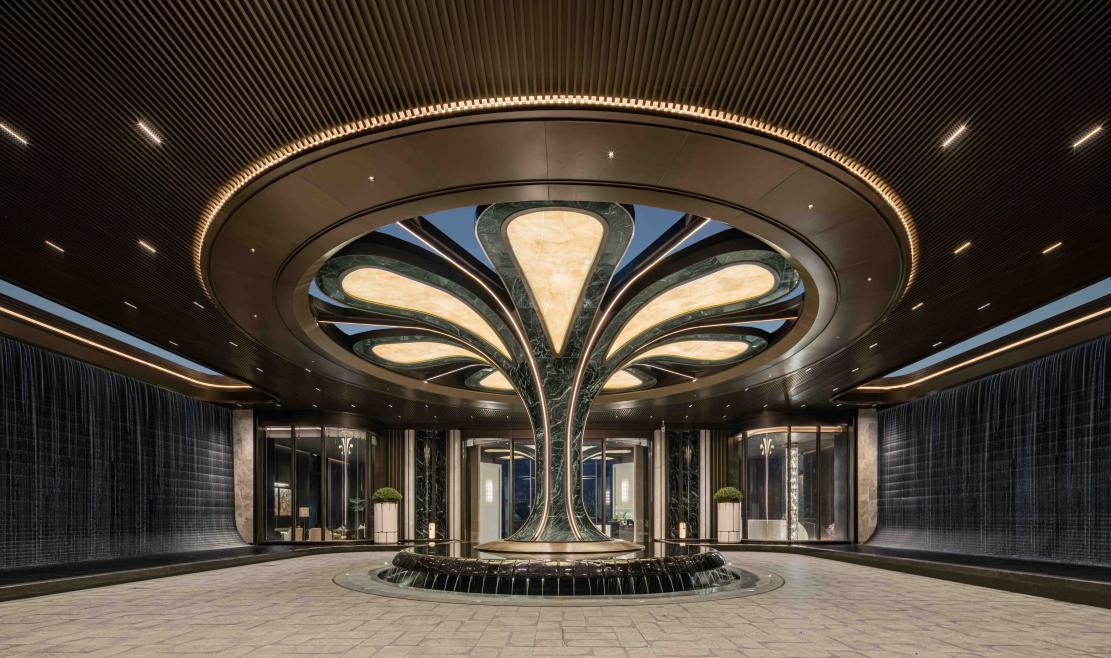 该项目以“生命之树”为核心设计理念,将自然环境的氛围垂直延伸至每家每户。据该项目负责人介绍,每户拥有的生态阳台在确保挑高与充足日照的同时,通过合理的进深与系统绿化,打造出真正可感可用的“空中花园”。从社区入口的普拉达绿奢石艺术装置,到架空层的泛会所空间,生态与美学渗透至社区的每个角落。