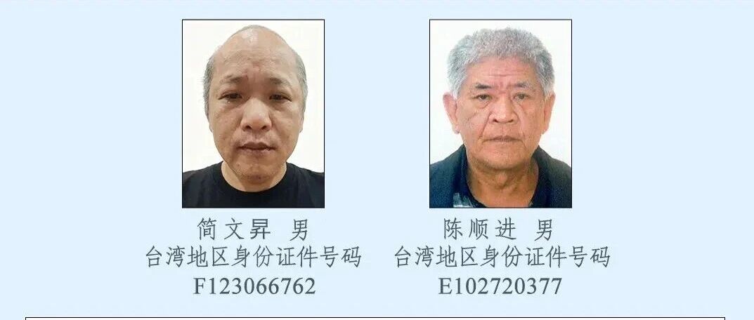 威海市公安局表示,现依法对简文昇、陈顺进悬赏追捕,请广大群众积极提供线索,凡向公安机关提供有效线索的举报人,以及配合公安机关抓获相关犯罪嫌疑人的有功人员。该局将视情给予5万元至25万元人民币的奖励。