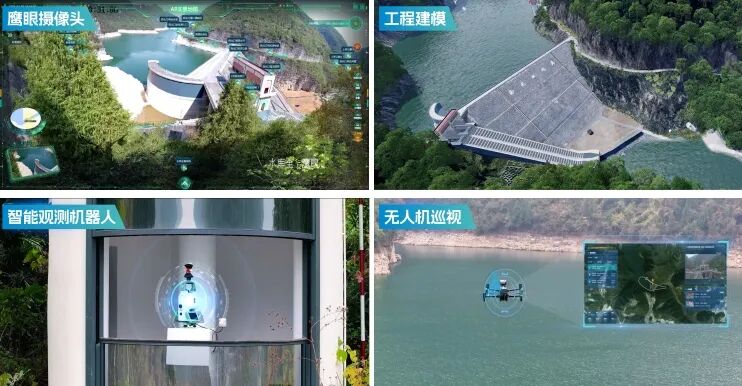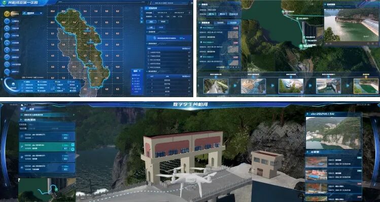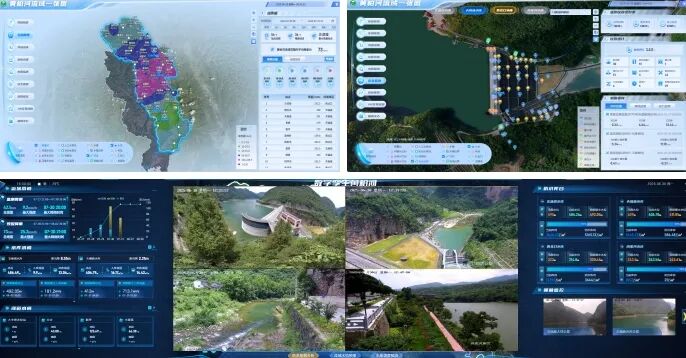 建成“天空地水工”感知体系,实现流域“可视、可知、可控”。流域按每16平方千米控制面积标准,建成了56个雨量监测站,20座水库及河道重点区域建成了32个水位站、7处流量站,构成水文要素监测网;通过216路视频监控站点及180°鹰眼摄像头组成了空中立体监控网;通过无人机、气象卫星与卫星遥感构建天空预测网,通过无人船、GNSS+测量机器人、大坝监测设施组成地面感知网,各类设备均实现4G/5G+北斗双模传输,基于实时监测,遥感影像、高程、倾斜摄影、水下地形等空间数据,以及工程BIM模型,构建实时动态、虚实结合、多维联动的流域实景动态一张图,基本实现了流域远程监控、远程操作,“一屏控流域”的信息化管理目标。