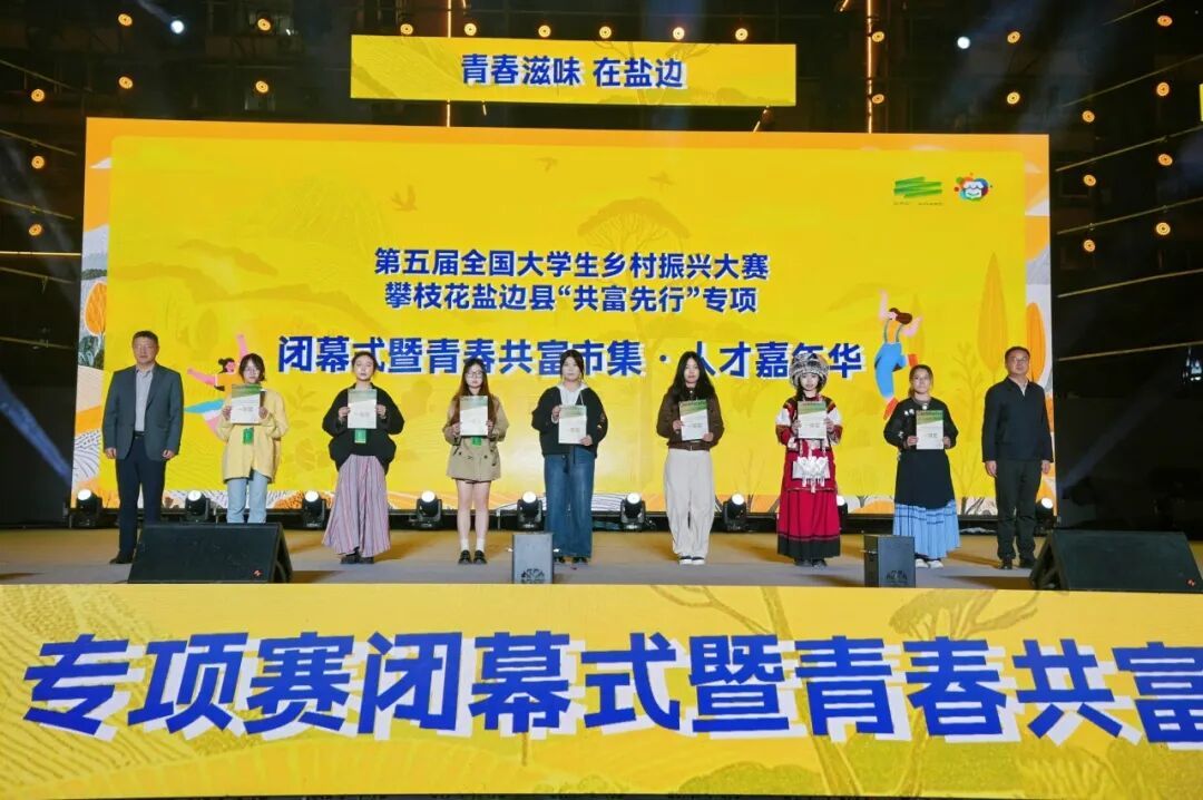赛事的举办离不开多方协同发力。8个月来,在盐边县委、县政府的统筹下,县乡村三级会同青创中心、乡立方公司等通力协作,为参赛团队提供了从工作保障到生活服务的全方位支持。闭幕式上为80支获奖团队和10位优秀指导教师进行了颁奖,进一步激发了青年群体参与共同富裕的热情与动力。