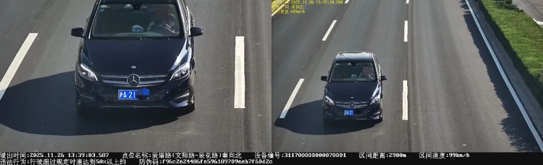 2025年11月26日13时39分,号牌为沪A21***的小型轿车在辰塔路(文翔路—辰花路)南向北,实施了“驾驶校车、中型以上载客载货汽车、危险物品运输车辆以外的机动车在高速公路、城市快速路以外的道路上行驶超过规定时速百分之五十以上且时速未超过一百五十公里的”违法行为。处罚:记6分、罚款1000元。
