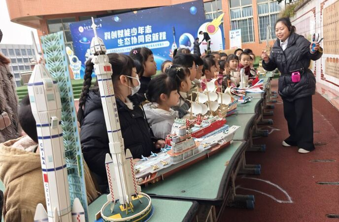 除了丰富多彩的公共体验活动,自流井区还结合学生年龄特点,开展了独具特色的年级专属竞赛项目,让孩子们在团队协作中锻炼问题解决能力,在竞技比拼中收获成长与进步。学生可通过回答科技问题、参与闯关挑战等方式积累积分,兑换科技小制作材料;亲手完成的作品将在学校指定区域长期展示,成为记录孩子们成长足迹的珍贵纪念。