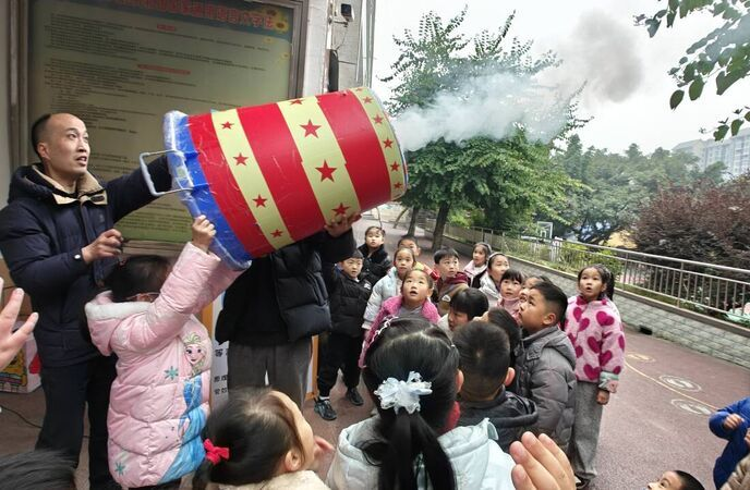 在主题为“科创赋能少年志 生态协同启新程”的此次活动开幕瞬间,干冰云雾通过6米长的PVC管缓缓升腾,将校园笼罩在如梦似幻的氛围中,让孩子们仿佛瞬间置身科幻世界。