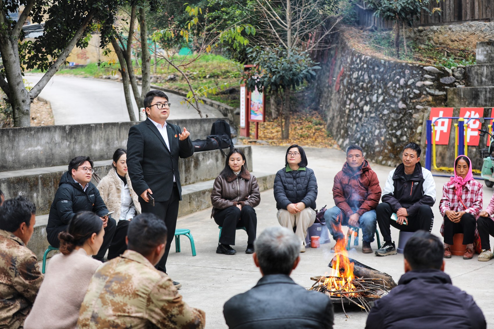 下午,队员们来到该乡黄竹村和王家坪村,分别与30多位村民们围坐在一起展开宣讲。现场点起取暖的柴火,气氛格外热烈。结束后,宣讲团成员还与村民频繁互动,回答问题。
