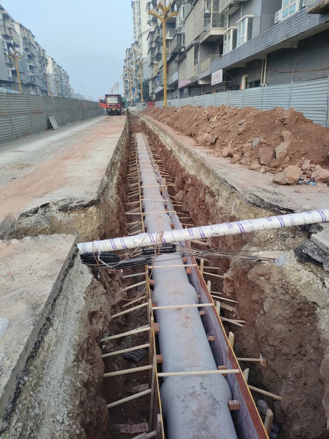 “管道安装已进入收尾阶段,我们正在全力攻坚路基路面!”12月22日,在雨污分流改造项目现场,项目经理陈炜身后是一片热火朝天的施工景象:挖掘机轰鸣,工人穿梭,一条全新的“地下血脉”正在广安高新区加速延伸。