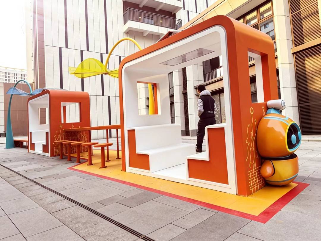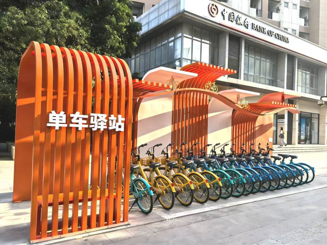 据了解,此次天欣路、合庆路、天瑞路三大路段的焕新升级,源于街道对企业员工与居民需求的精准洞察。为解决区域内生活配套设施不完善、公共休憩空间短缺等民生问题,街道主动承担责任:一方面,工作人员深入周边企业一线,面对面倾听企业诉求与员工心声;另一方面,搭建政企民三方沟通桥梁,广泛征集居民的意见和建议,构建了“政府主导、企业协同、居民共享”的多元共治格局。西园街道通过打造“艺术+实用”的休憩空间(部分座椅配备无线充电功能)、建设规范有序的单车停放驿站、增设主题鲜明的惠民宣传栏等措施,将艺术设计与民生需求深度融合。