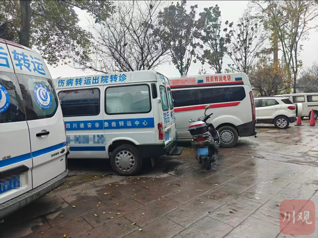 停靠在川北医学院附属医院茂源南路综合院区附近的院后转运车辆。陈堃 摄