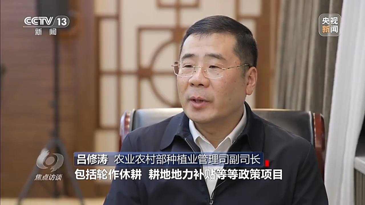 农业农村部种植业管理司副司长 吕修涛:比如每年都提早公布稻谷小麦的最低收购价,包括轮作休耕、耕地地力补贴等等一些政策项目,能够稳定农民种粮的收入预期,对于稳定粮食种植面积起到很好的引导作用。