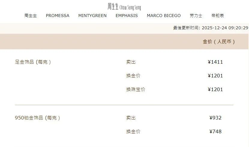 国内部分品牌足金饰品24日价格上涨。其中,周生生金饰克价为1411元,较前一日上涨8元,较22日上涨44元;老凤祥为1406元,较前一日上涨7元,较22日上涨41元;周大福为1410元,较前一日上涨7元,较22日上涨42元。