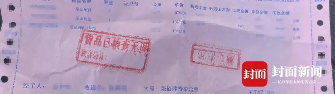 消费者晒出“旧料换新款”提货单 收据金额仅为工费差价