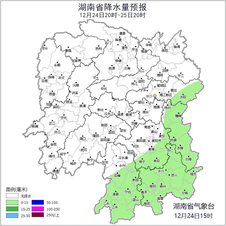 24日晚上至25日白天,湘东、湘东南小雨转多云,其他地区阴天到多云,清晨湘西北局地有雾;北风3~4级,阵风6~7级;最低气温5~7℃;最高气温11~13℃。