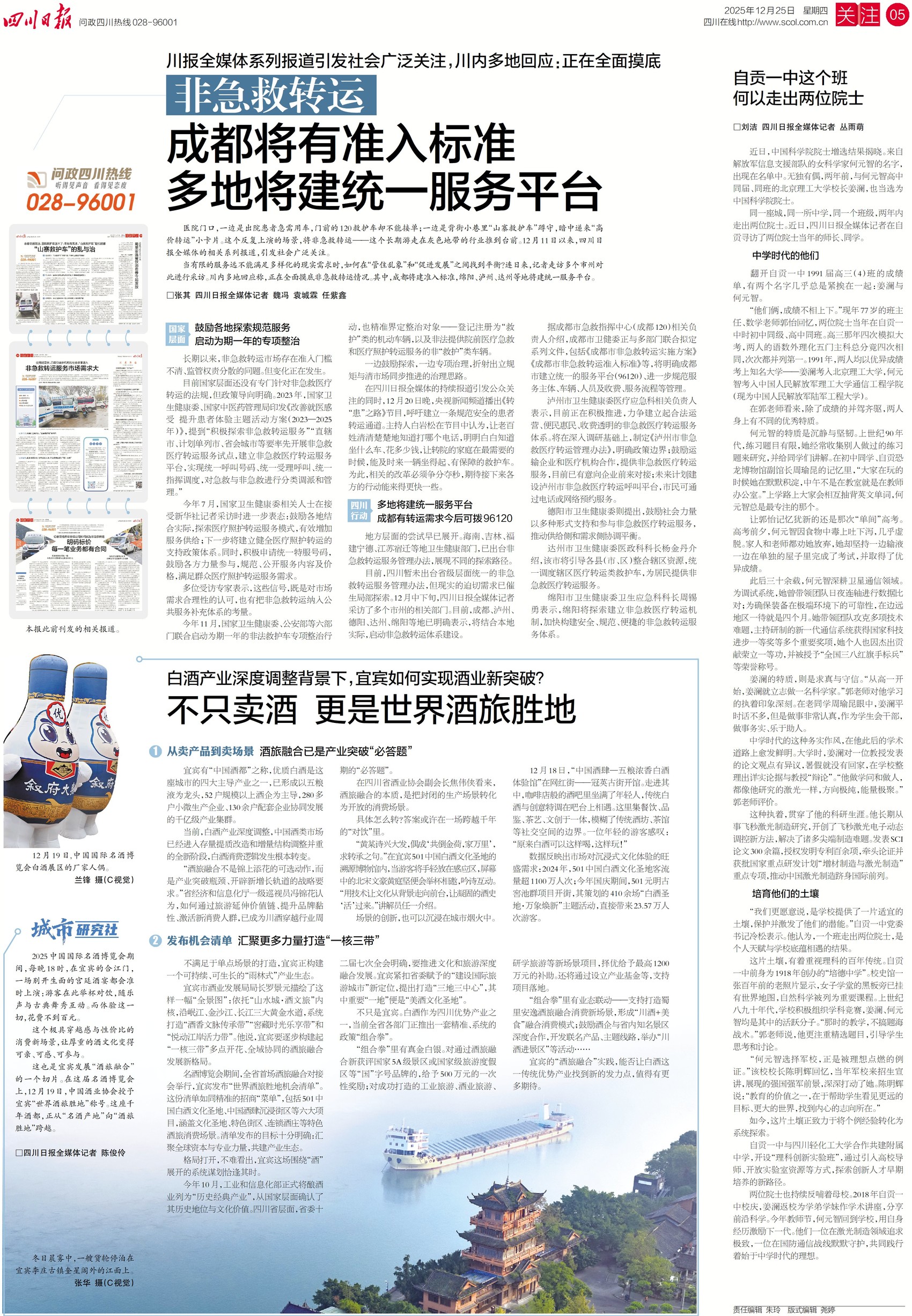 “山寨救护车”应该如何解决?川内多地如今已有回应——正全面摸底非急救转运情况。其中,成都将建准入标准,绵阳、泸州、达州等地将建统一服务平台。今日五版看详情。