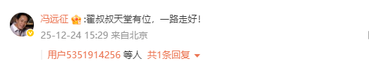 演员冯远征留言悼念:翟叔叔天堂有位,一路走好!