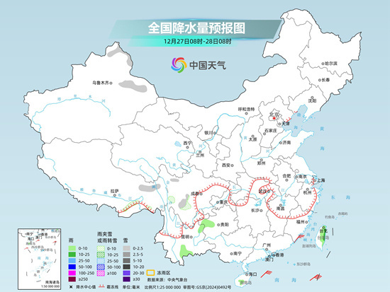 昨天开始,全国的降水开始逐渐减少。昨天,东北地区的降雪基本结束,南方仍有大范围阴雨。监测显示,24日8时至25日6时,新疆北部、内蒙古东部、东北地区及山东半岛等地部分地区出现雨夹雪或小雪;广西北部至浙江北部一带等地部分地区出现中雨或大雨。