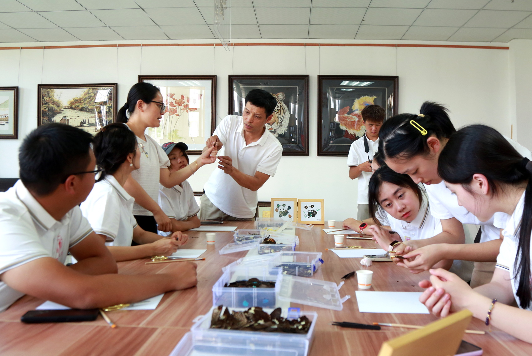 在泸州市纳溪区蝴蝶画非遗体验基地,“中国好人”、蝴蝶画非遗传承人王世宏常年在手把手教学与匠心讲述中,滋养着一批批研学青少年的心灵。