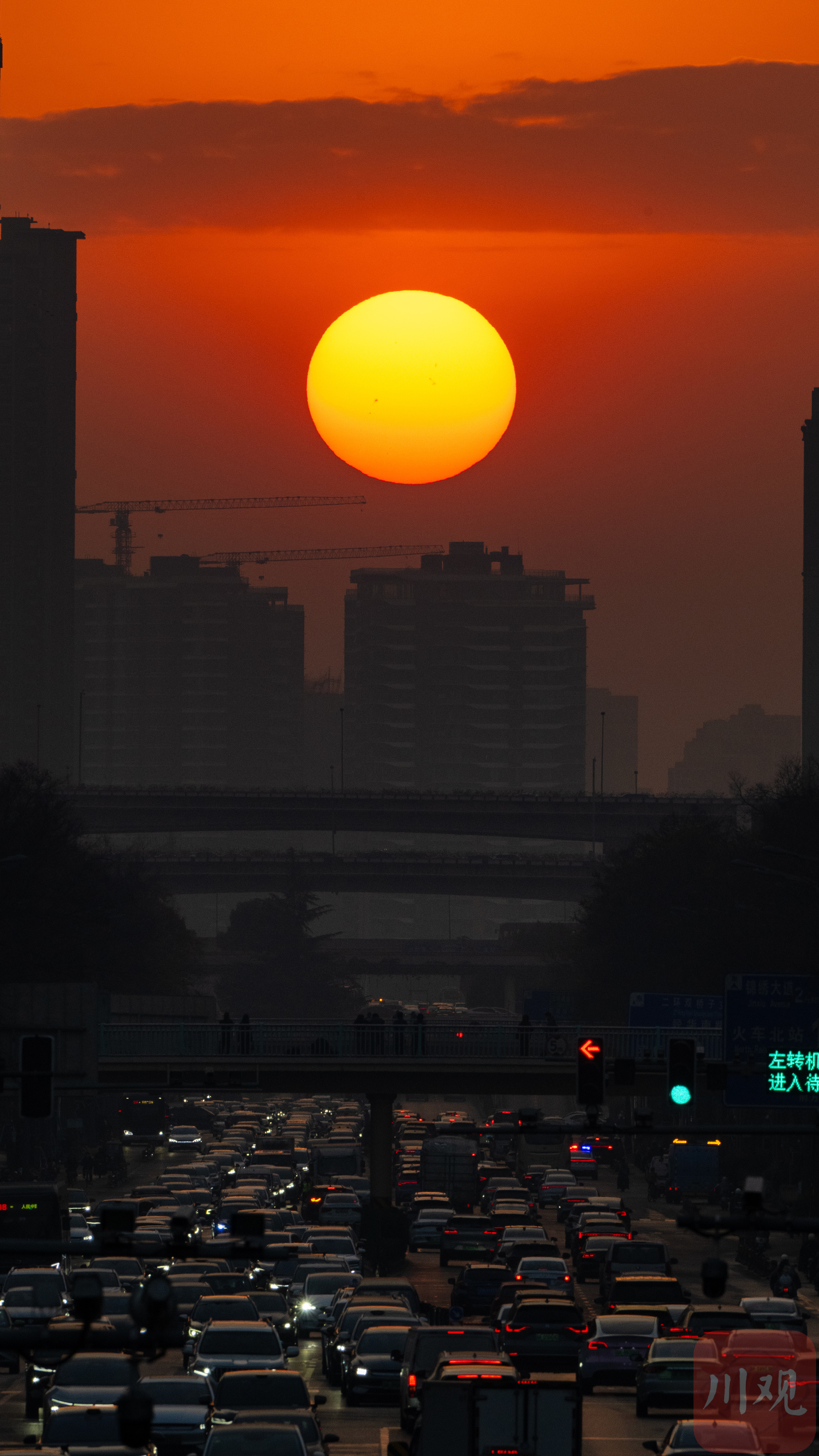 12月25日清晨,蜀都大道的悬日美景。