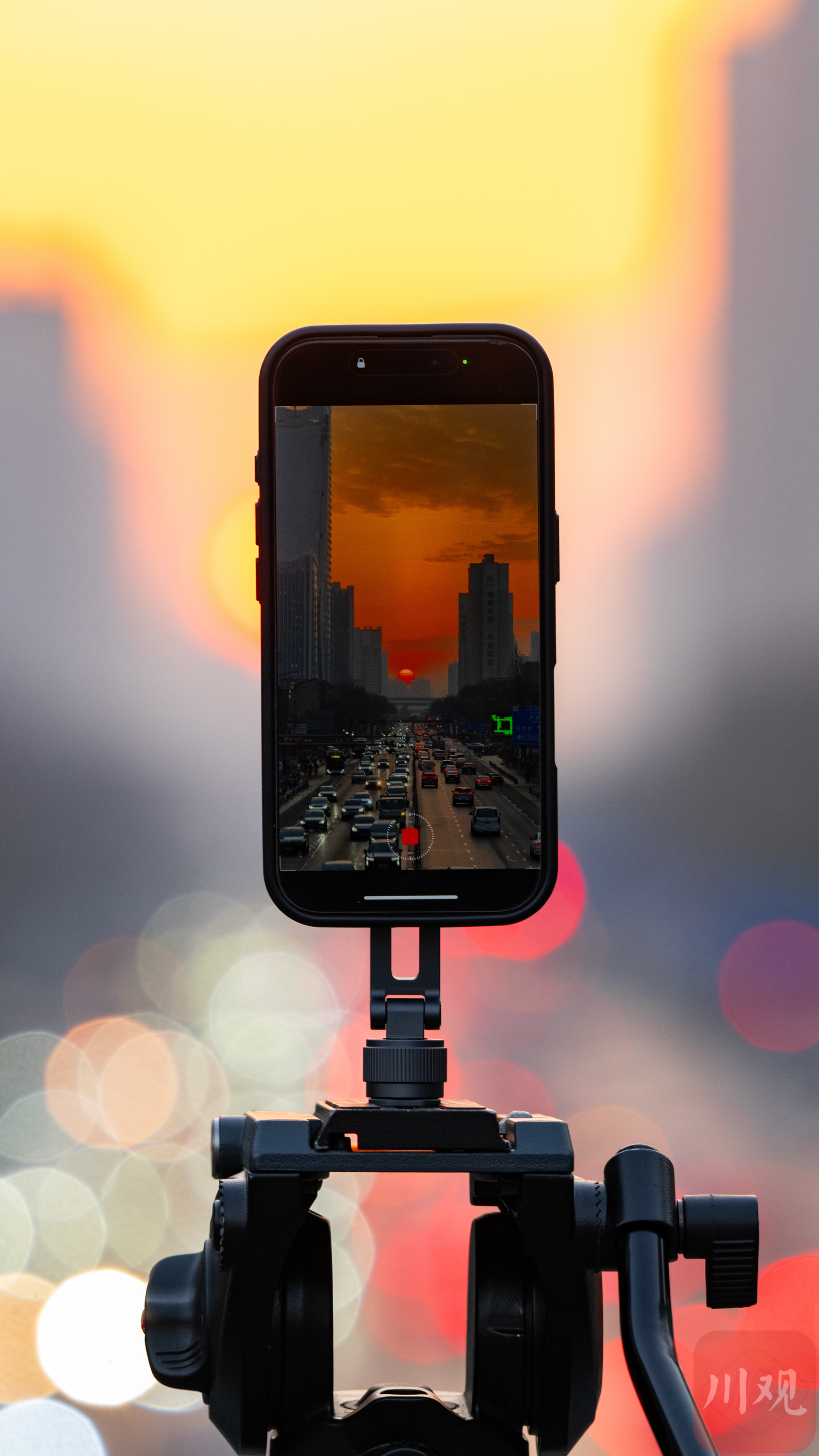 现场拍摄者用手机记录悬日美景。