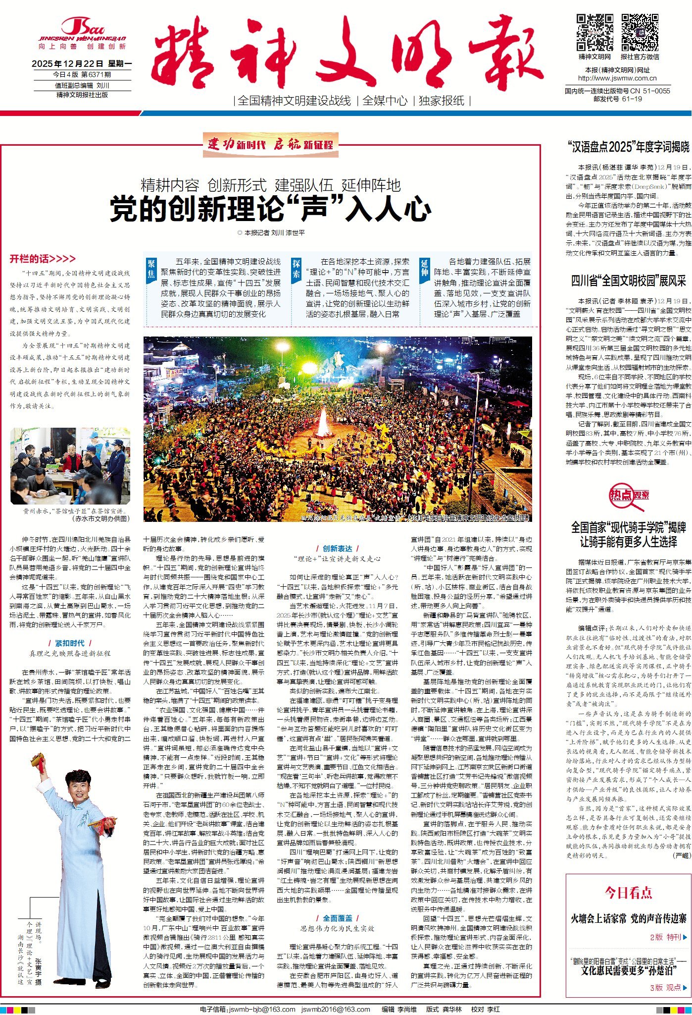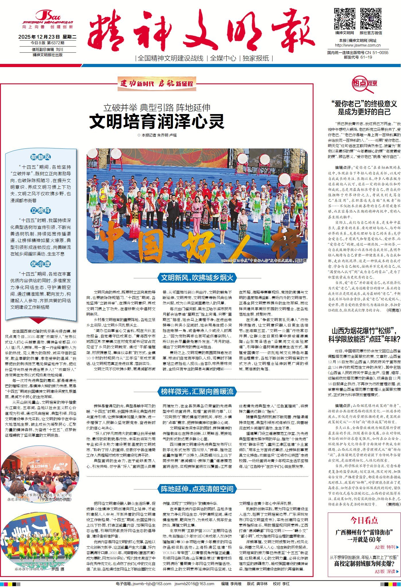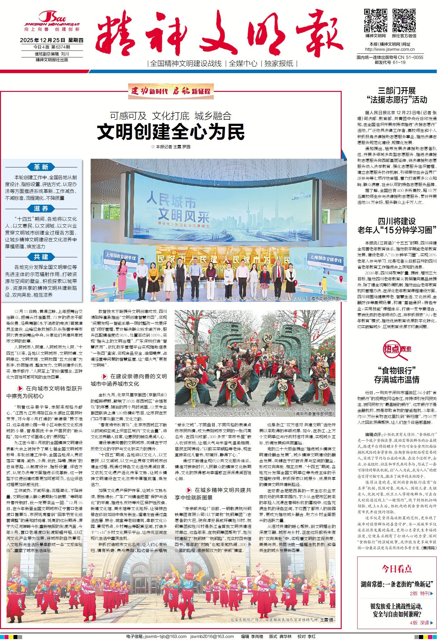 2025年12月22日起,为全景展现“十四五”时期精神文明建设丰硕成果,推动“十五五”时期精神文明建设再上新台阶,《精神文明报》推出“建功新时代 启航新征程”专栏,生动呈现全国精神文明建设战线在新时代新征程上的新气象新作为。