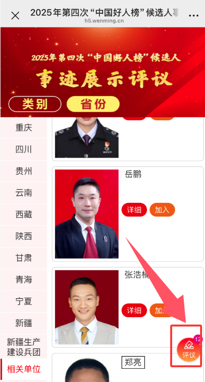 网友可搜索关注“中国文明网”微信公众号,从首页下方菜单栏进入“好人评议”页面,一起学习身边好人,传递榜样力量。