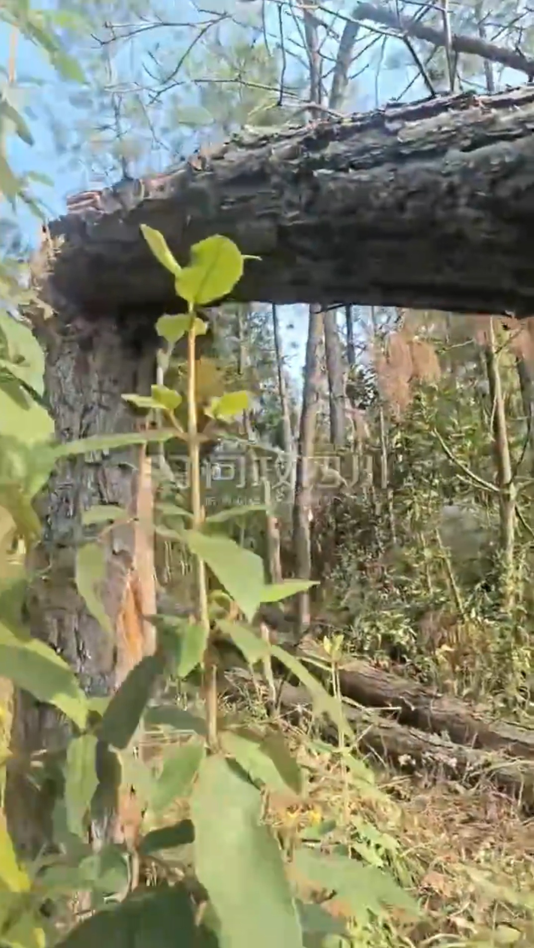事发林地为邓先生母亲的林地,他数了数,有9株松树倒塌,并认为这是采集松脂造成的。“最近4年,每年都有企业给予村民一定费用后,到村里采集松脂,附近林区比较粗大的松树都有采集松脂留下的痕迹——树干下部的树皮被切割了,留下伤痕”,邓先生介绍。