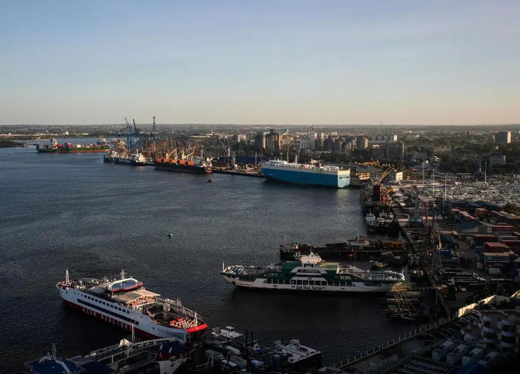 这是11月17日在坦桑尼亚达累斯萨拉姆拍摄的达累斯萨拉姆港。