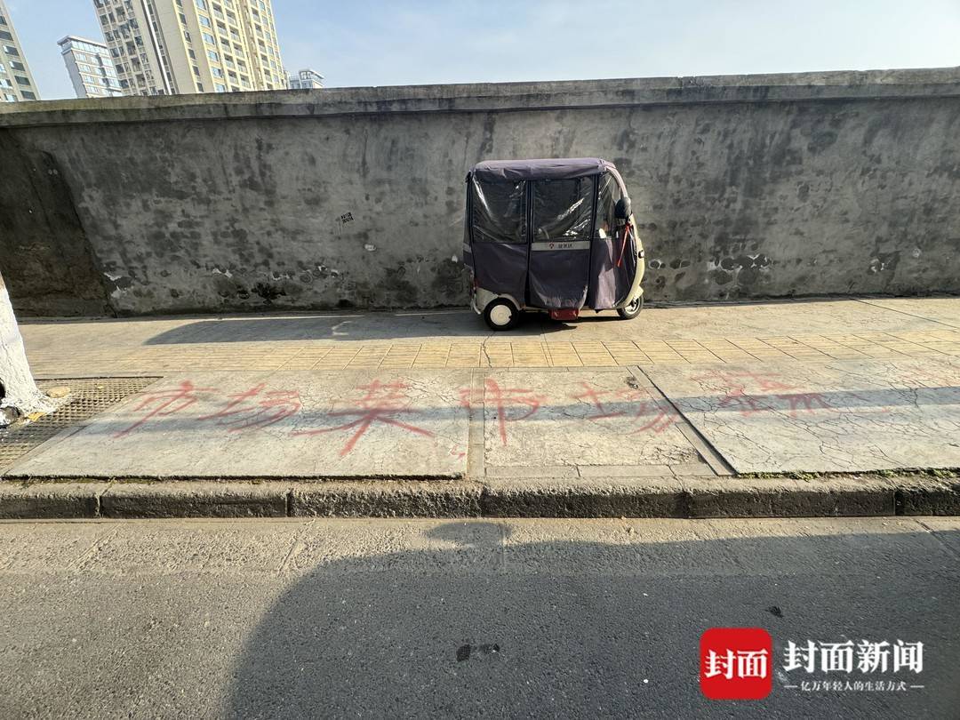 而在老土桥农贸市场附近,每天都有大量的游商摊贩聚集,他们为了占据有利位置,起初是用工具占位,后来直接变成了用油漆喷涂地面,将原来的通行道路直接拦截。